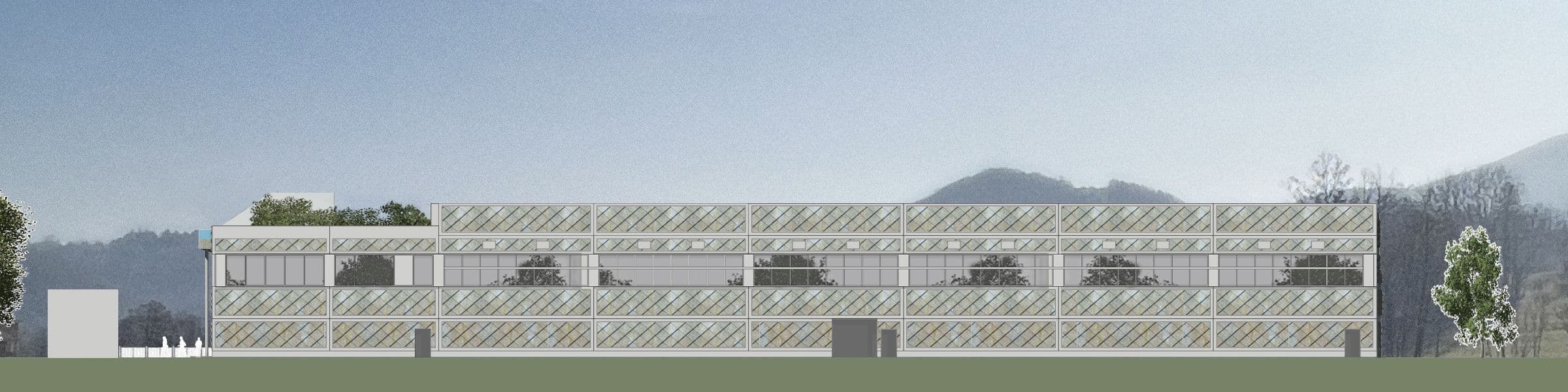 L’edificio integra funzionalità ed efficienza aziendale a un’attenta valorizzazione del paesaggio montano, grazie a scelte architettoniche distintive.