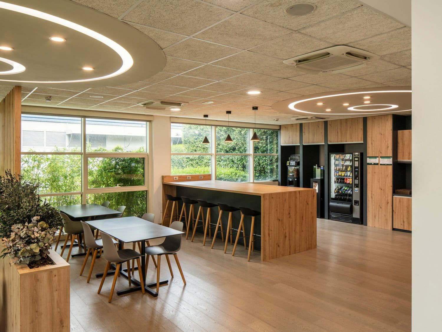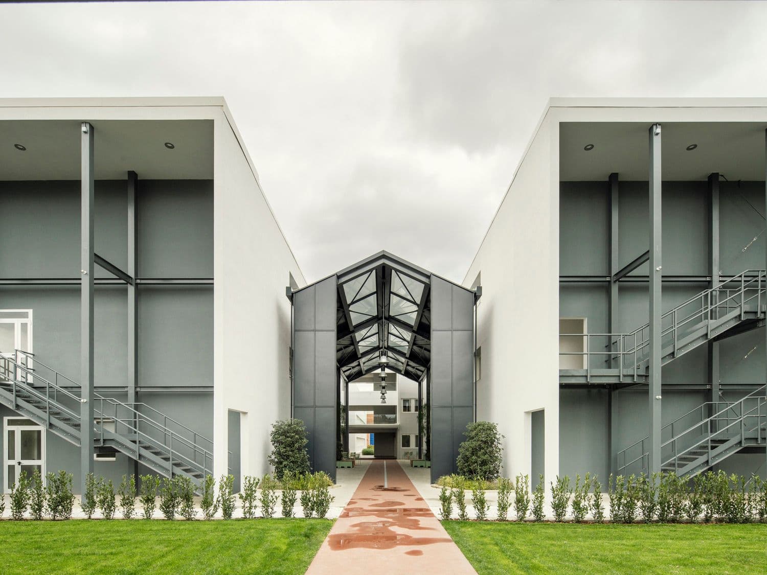 Quattro edifici sono stati sopraelevati di un piano e collegati da tettoie che danno forma a nuove piazze coperte, spazi per eventi e percorsi protetti. Le serre bioclimatiche assicurano continuità ai percorsi interni e contribuiscono al miglioramento del comfort ambientale, mentre la nuova mensa del complesso ospita La Fabbrica dell’Aria®, un sistema botanico per la filtrazione naturale dell’aria.