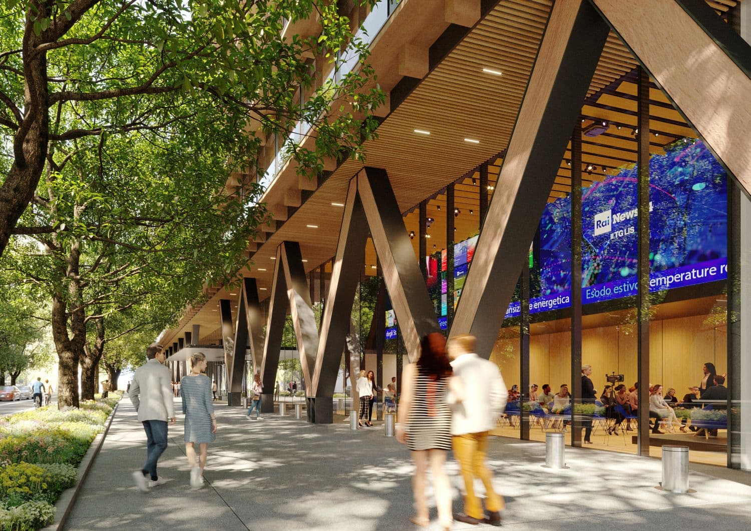 Il progetto di riqualificazione nasce con l’obiettivo di riunire le diverse sedi Rai in un unico hub innovativo e tecnologicamente avanzato. L’intervento si compone di una stecca direzionale di sette livelli fuori terra affacciata su via Gattamelata e di un volume polifunzionale retrostante dedicato alle attività produttive. L’architettura si configura come un organismo trasparente, accogliente e permeabile, capace di mettere in relazione la produzione culturale con lo spazio urbano e di definire un fronte profondamente rinnovato e integrato nel contesto. Tra i due corpi, un elemento di connessione organizza i collegamenti orizzontali e assicura continuità funzionale tra le diverse componenti del complesso.