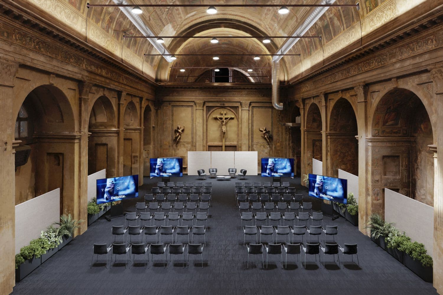 All’interno del nuovo campus Deloitte a Milano, la chiesa sconsacrata di Chiesa di San Paolo Converso, risalente al XVI secolo, è stata oggetto di un progetto di digitalizzazione finalizzato alla sua restituzione funzionale e culturale alla città. Abbiamo realizzato un rilievo digitale integrato tramite fotogrammetria, laser scanner e GNSS, generando una nuvola di punti tridimensionale ad alta precisione. Le informazioni raccolte non si sono limitate alla documentazione dello stato di fatto, ma sono state utilizzate per la costruzione di un modello BIM strutturato dal punto di vista geometrico e informativo. Il modello, concepito come un vero e proprio database intelligente, associa a ogni elemento dati su materiali, stato di conservazione e proprietà fisico-meccaniche. Attraverso un tour virtuale del modello è stato inoltre possibile descrivere, simulare e immaginare scenari futuri per l’utilizzo e la valorizzazione della chiesa come spazio pubblico ed espositivo.