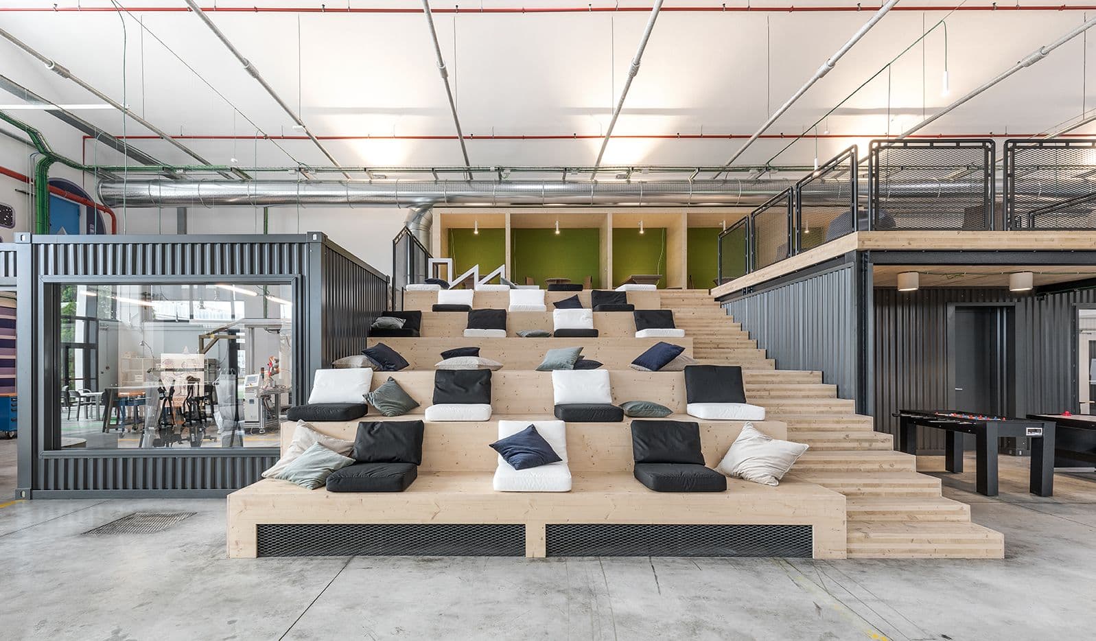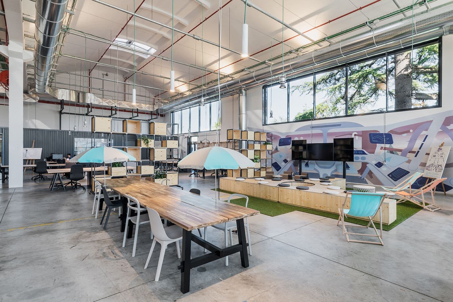 Il progetto valorizza l’estetica industriale originale, articolando aree collaborative, creative e operative a supporto della comunità dell’innovazione Industry 4.0.