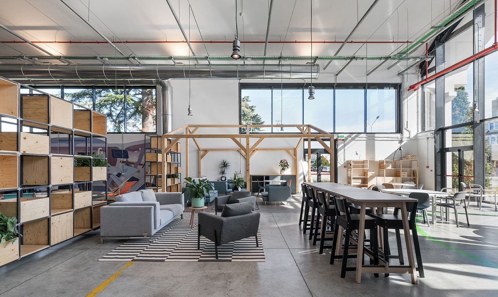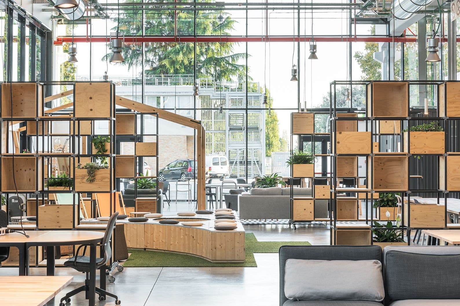 L’Electrolux Innovation Factory nasce come piattaforma per l’innovazione aperta, pensata per favorire scambio, sperimentazione e contaminazione tra dipartimenti R&D, startup e partner esterni. L’intervento interpreta l’involucro industriale esistente, preservando pavimentazioni e volte originali e articolando 1.000 mq in spazi complementari: Self Café e area relax, Creative Area con albero naturale centrale, open space operativo e area dedicata alle startup, sale conferenze flessibili e Flexy Area. Una gradonata in legno conduce alla Terrazza sopraelevata con booth riservati. Impianti a vista, materiali grezzi, arredi mobili e una forte permeabilità visiva garantiscono flessibilità, riconfigurabilità e identità industriale.