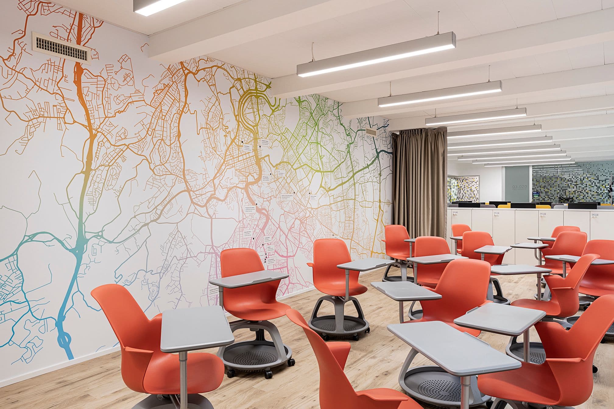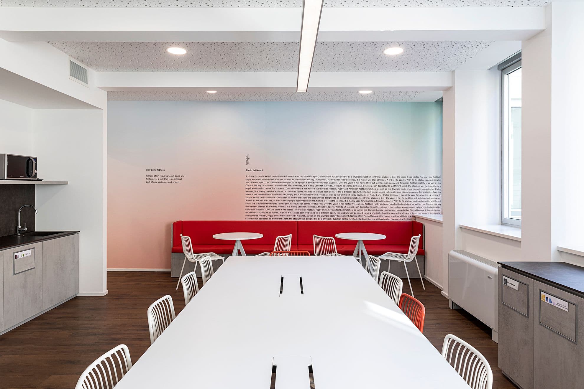 Il Wavespace completa l’intervento come ambiente dedicato all’innovazione: sette stanze immersive pensate come laboratorio di intelligenza collettiva, dove architettura ed esperienza supportano collaborazione e sviluppo di idee.