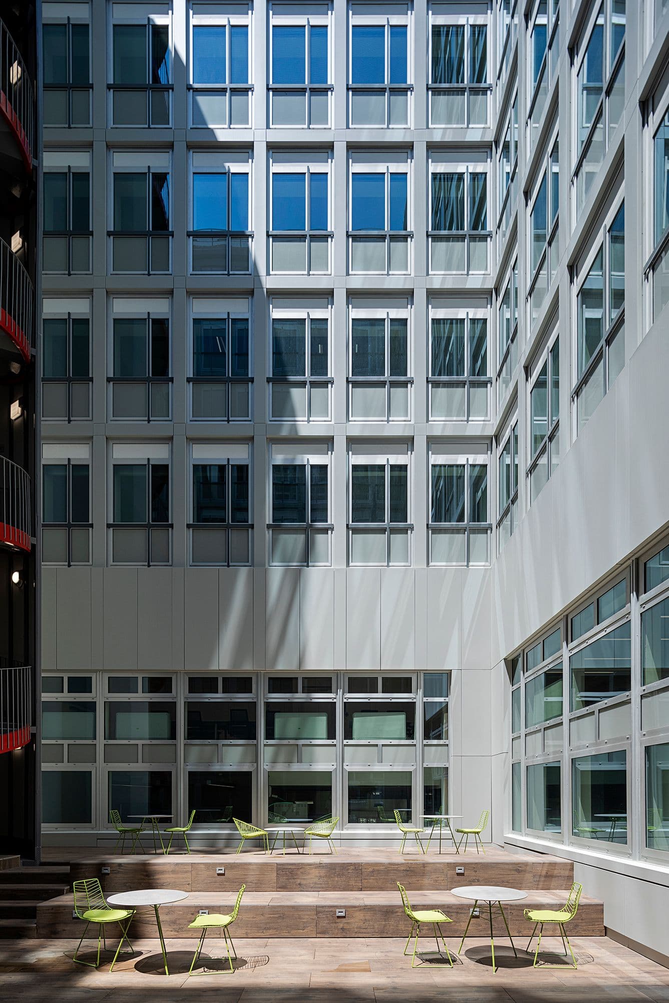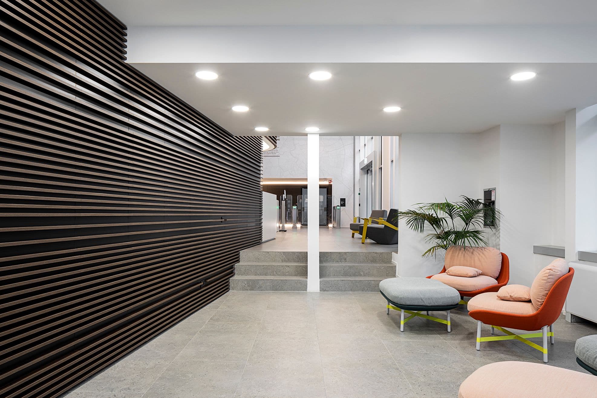 La metafora funge da guida per l’intero intervento e costruisce un’identità spaziale forte, capace di rendere gli ambienti di lavoro più leggibili e dinamici.