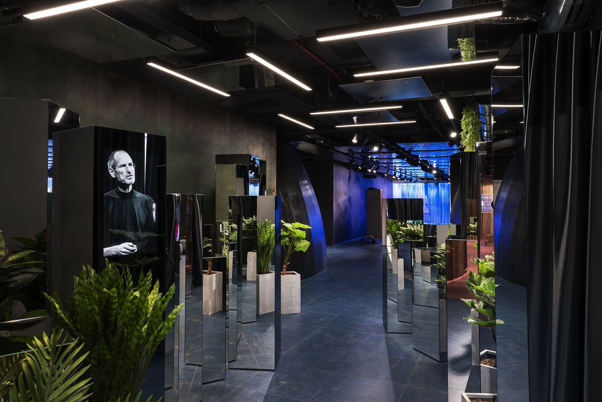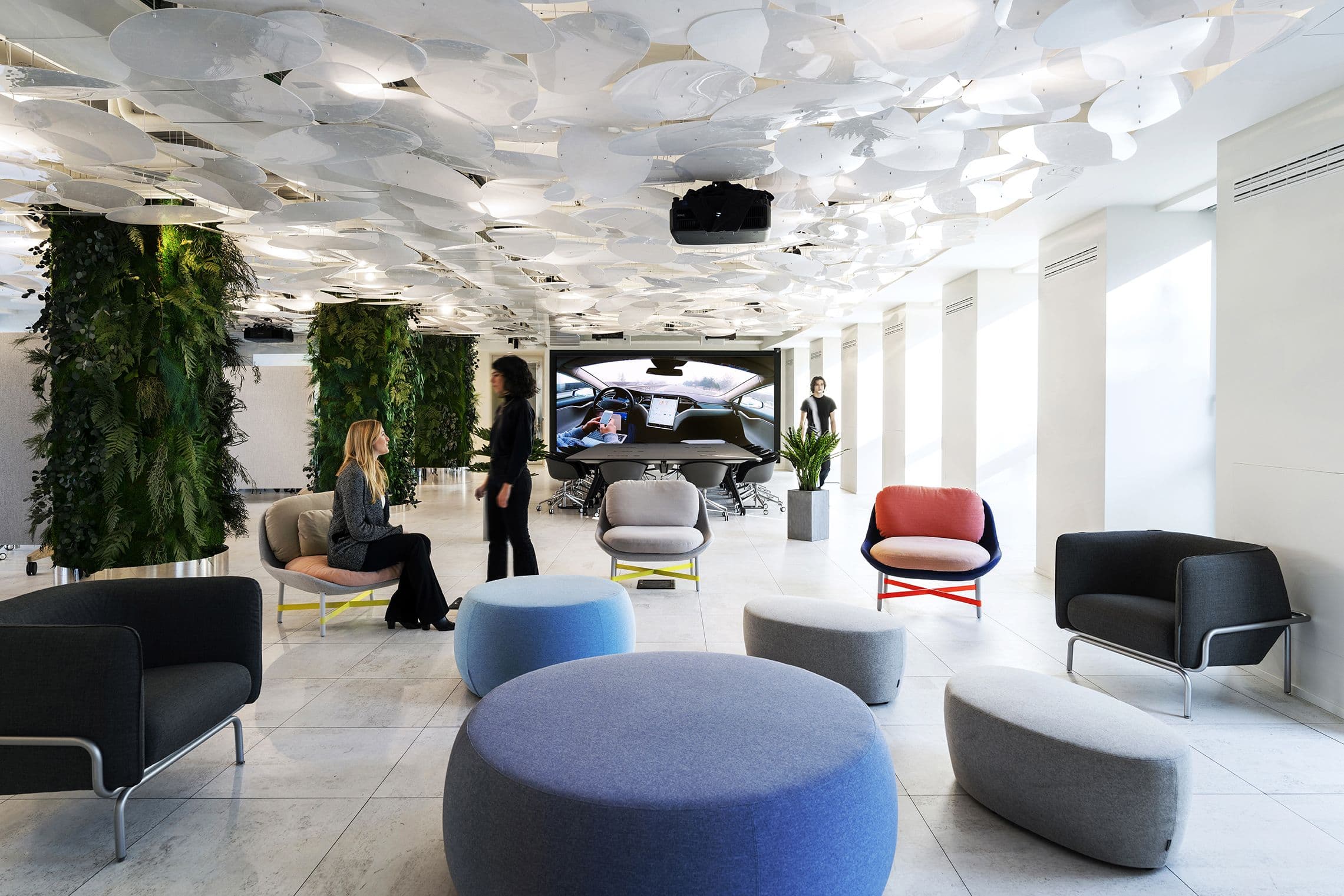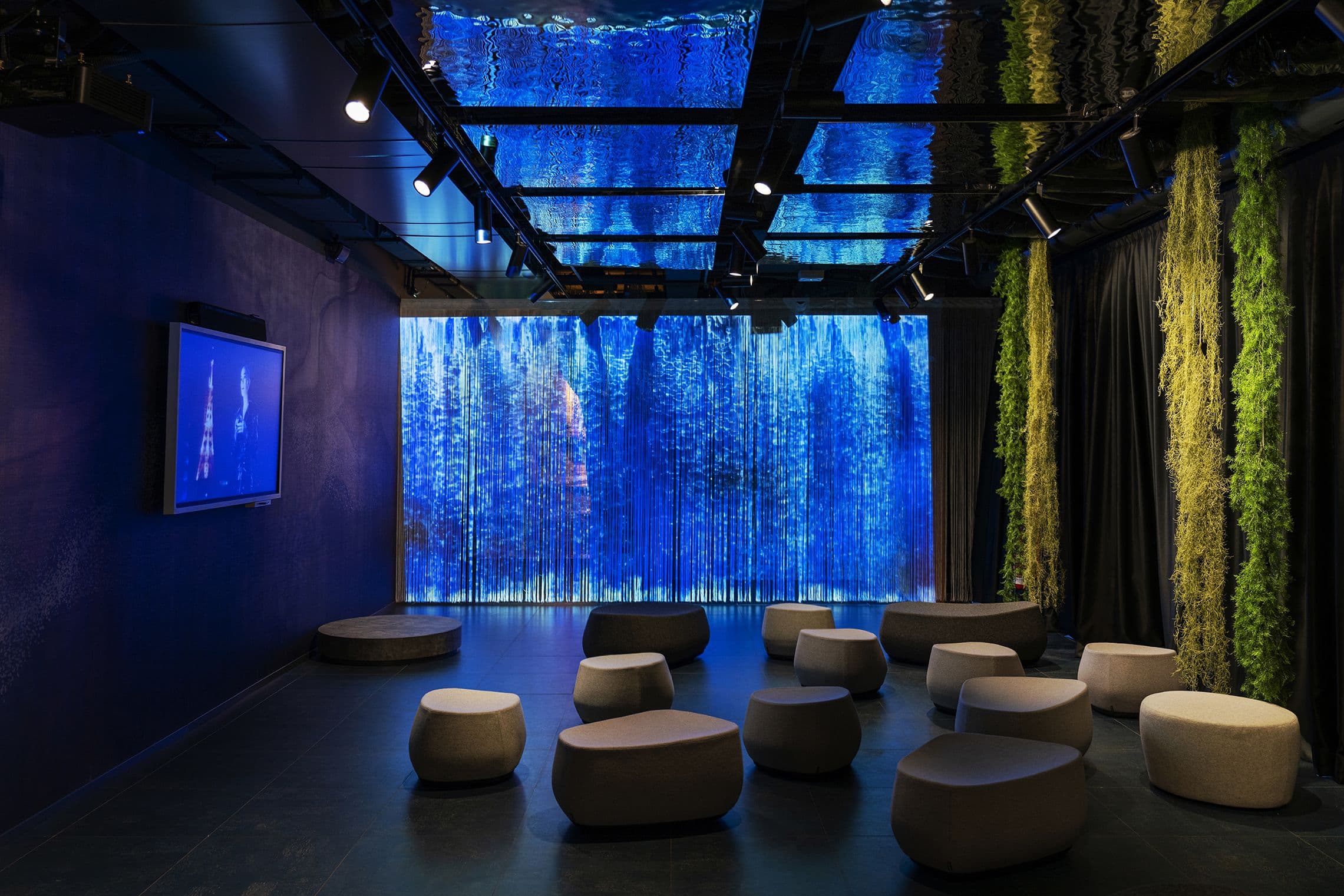 L’intervento ha introdotto soluzioni architettoniche custom, involucri sensoriali, illuminazione d’effetto, arredi riconfigurabili e tecnologie digitali integrate, traducendo il concept degli elementi naturali in uno spazio polifunzionale che supporta il lavoro di squadra e i processi di trasformazione aziendale.