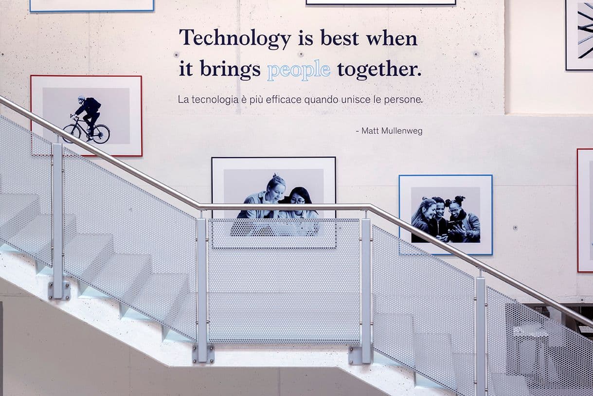 Il progetto integra interior design e space planning, physical branding e comunicazione per creare un percorso di scoperta e incontro all’interno dei 2.300 mq dell’edificio.