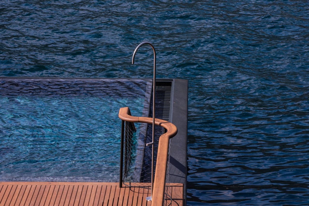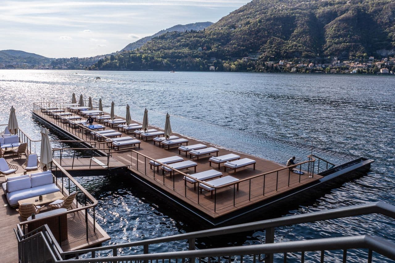 In collaborazione con Herzog & de Meuron, in qualità di design consultant, è stata realizzata la prima infinity pool galleggiante del Lago di Como. La piscina, lunga 40 metri, è costituita da una vasca metallica rivestita in pietra di Cardoso, progettata per creare un effetto di continuità visiva con il lago. L’opera è stata prefabbricata in 13 moduli in Finlandia, successivamente trasportati via acqua e assemblati in loco. Parallelamente, il programma di interventi ha incluso la riqualificazione della SPA, di circa 1.200 metri quadrati, e della palestra, attraverso l’introduzione di finiture di pregio come boiserie in noce e marmi selezionati, oltre all’integrazione di tecnologie wellness avanzate. Il PIP ha inoltre interessato camere, bagni e aree comuni, con aggiornamenti alle finiture, agli arredi e agli spazi di servizio, inclusi ristorante e bistrot. La gestione del cantiere si è svolta in tempi particolarmente ridotti, tenendo conto dei vincoli legati all’apertura stagionale della struttura, alla complessità dell’edificio esistente e alla frammentazione degli interventi all’interno di un sistema di ville storiche.