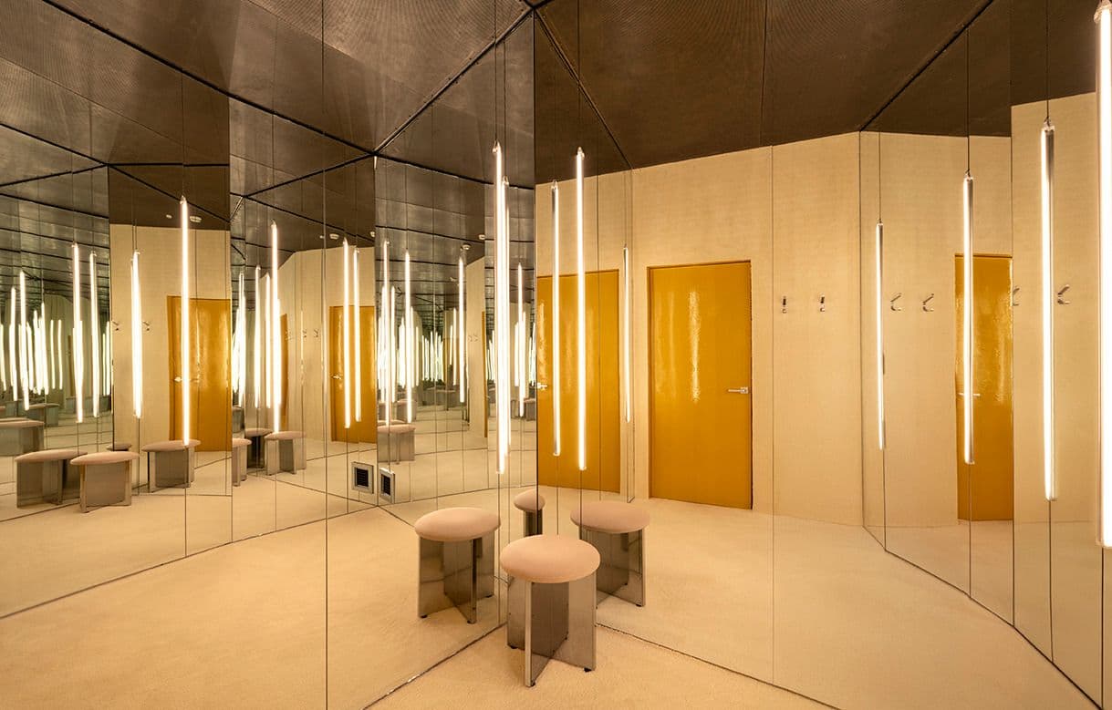 L’installazione dell'artista giapponese Hajime Sorayama all’ingresso rafforza l’identità futuristica del brand, così come i materiali pregiati impiegati sono perfettamente integrati con il look and feel minimalista degli arredi, accentuati dall’illuminazione modulare.