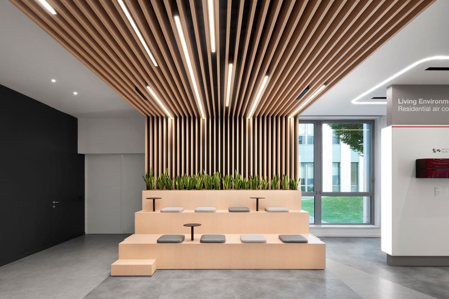 La progettazione degli interni riflette un equilibrio tra suggestioni italiane e giapponesi, con un’attenzione particolare al comfort acustico, luminoso e climatico, oltre alla manutenzione semplificata.