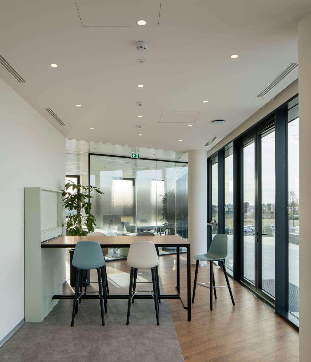 Il complesso acquista così lo spazio necessario per ospitare grandi zone open space e uffici, reception, aree experience, un auditorium riconfigurabile con pareti impacchettabili, aree break e meeting room. All’esterno, un’area sportiva e una zona mensa outdoor favoriscono socialità e benessere.