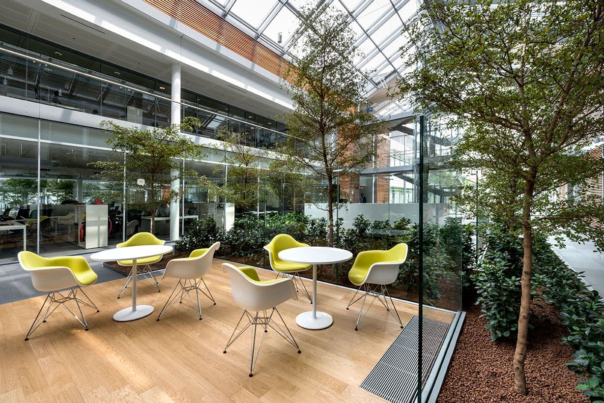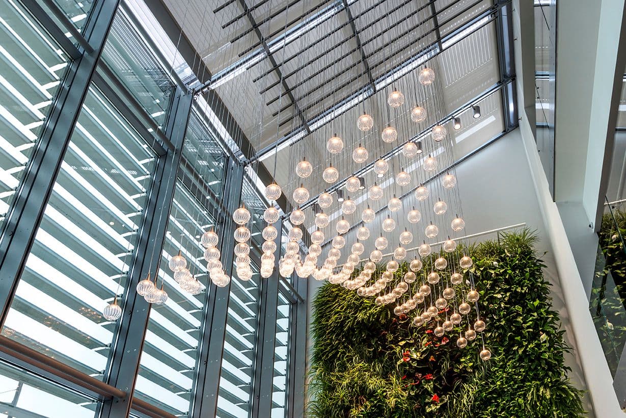 Il progetto degli interni interpreta un nuovo modello organizzativo tramite uno stile d’arredo sobrio ed elegante che si accende di colore nelle zone informali e nelle serre, dove la luce naturale valorizza le cromie.