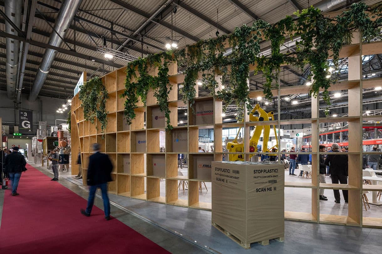 Piante, materiali naturali e tecnologie avanzate si fondono in una proposta espositiva in legno completamente riconfigurabile e dal forte impatto visivo.